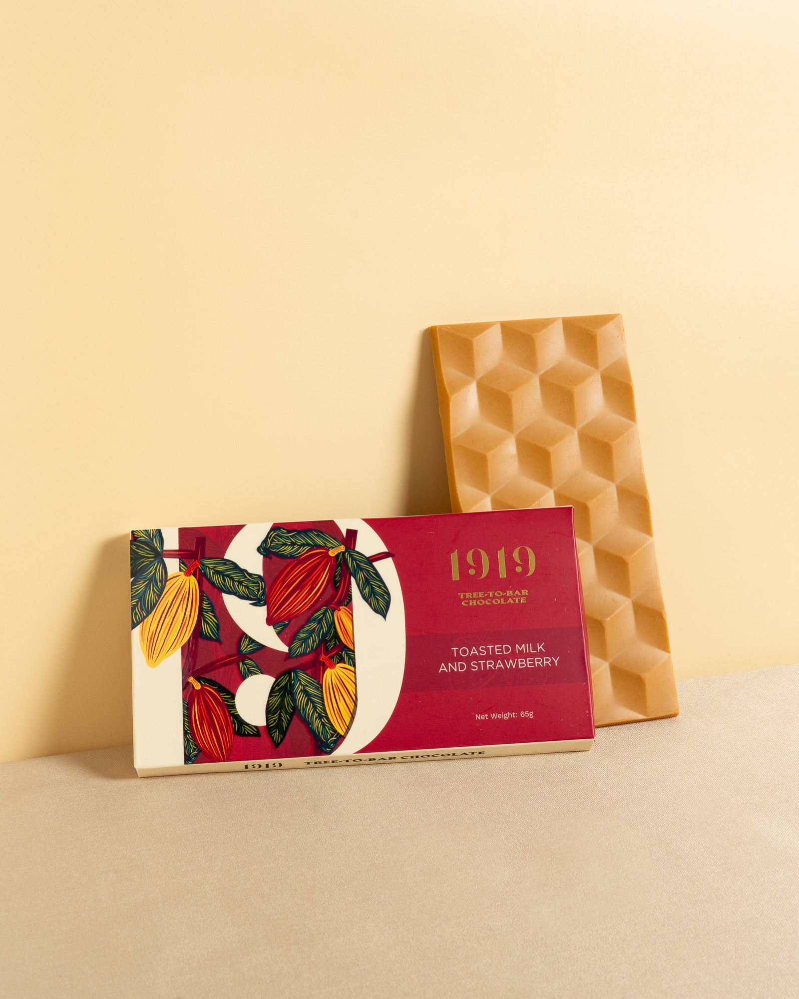 Sweet, fruity and indulgent, our toasted milk & strawberry chocolate is a decadent treat that's hard to resist. With a rich, toasty flavor and the natural sweetness of strawberries, it's a perfect balance of flavors.